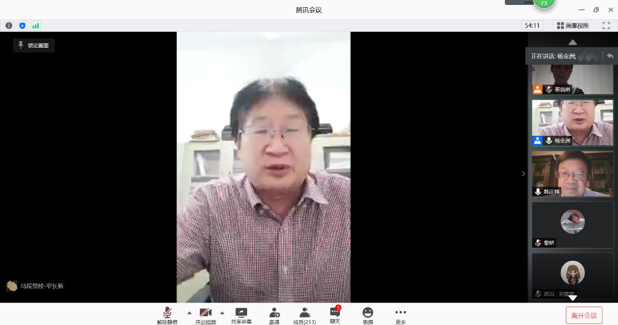 6月8日晚,“多彩中華—中華民族共同體意識教育”課程本學期第五講在線開講。此次課程由馬克思主義學院楊金洲院長、瞿曉琳老師主持。邀請中央黨校教授、博士生導師韓慶祥主講。運用馬克思主義哲學的觀點,以中國智慧的獨特視角深度全面剖析了抗疫期間所體現的偉大的中國精神。