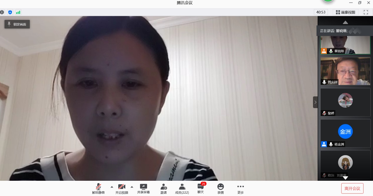 楊金洲院長對韓慶祥教授所作報告進行總結并發表感想。首先對韓慶祥教授表示感謝。并從三方面談了自己的感想。楊金洲表示此次報告是對抗疫的深刻反思,體現了韓慶祥教授對人民的情懷,家國的情懷,對青年學生關愛的情懷。是一場哲學的盛宴,通過對五個中國智慧的展示,使我們對中國精神有了更加具體、深刻的體會。楊金洲認為,這六大精神值得廣大青年學生思考、踐行。作為新時代青年應深刻意識到肩上所負有的責任與使命。