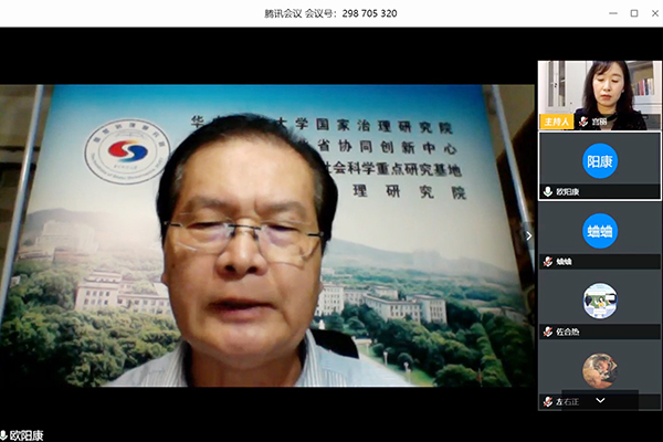 歐陽康教授與同學們連線,以馬克思主義世界觀立論,解構分析了人類命運共同體中的中華民族共同體、中華民族抗疫共同體,并且就公共衛生安全在個人、民族、國家中的特殊意義進行了講解。他立足歷史與時代、智慧與勇氣、反思與前瞻3個結合點,強調了在疫情阻擊戰中彰顯的強大制度優勢和治理效能,指出了加強全球公共衛生領域合作、構建人類命運共同體對于控制疫情在全球爆發的重要性,對公共衛生安全與國家安全之間的內在相關性展開了思考,并對下一步總結經驗、認清短板、建構體系、加速中華民族的偉大復興進行了解讀。