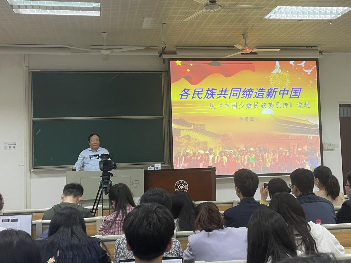 2021年4月29日晚,多彩中華第四季第三講主題為“各民族共同締造新中國——從《中國少數民族英烈傳》說起”的講座在11號樓100教室開講,邀請了中南民族大學二級教授李資源主講。此次課程由馬克思主義學院宮麗老師主持。