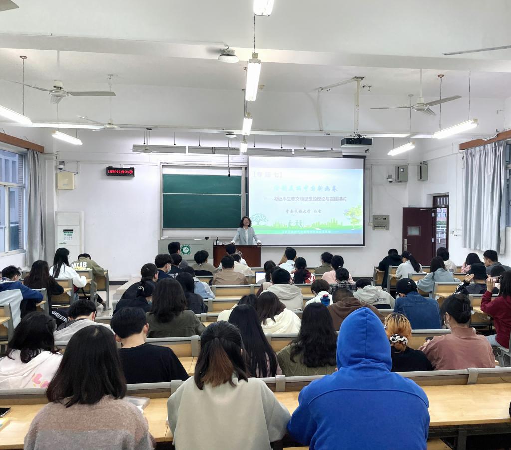 2022年4月18日晚,“習近平新時代中國特色社會主義思想”專題課第五講“繪制美麗中國新畫卷——習近平生態(tài)文明思想的理論與實踐探析”在11號教學樓509教室開講,本次課程由中南民族大學馬克思主義學院白雪講師講授,90多名學生參加課堂學習。