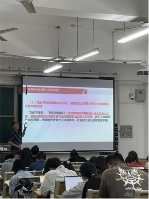 2022年5月9日晚,“習近平新時代中國特色社會主義思想”專題課第八講“全面推進依法治國的總藍圖:習近平法治思想的核心要義”在11號教學樓310教室開講,本次課程由中南民族大學法學院教授陳光斌進行講授,90余名學生共同參與課堂學習。