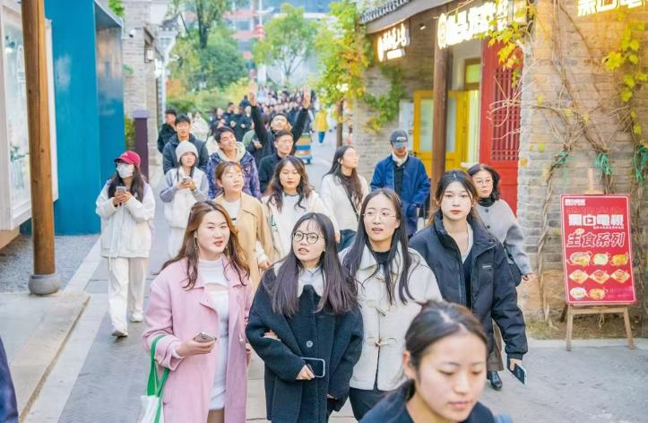 最后,同學們來到黃石城市地標——未蘇灣。在這里,同學們看到昔日的城中村變成了當今的網紅打卡地,感受到未蘇灣的滄桑巨變,體現了自然生態景觀、鄂東南古韻文化和青年社區相融合的理念和特色,展現出城市發展的歷史文化力量和青春力量的匯聚。