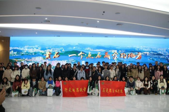 為深化新時代學校思想政治理論課改革創新,將思政小課堂同社會大課堂結合起來,建設用好“大思政課”,11月24日,我院與黃石市市場監督管理局聯合開展“大思政課”社會實踐活動。本次活動由滕帥、王依依、米霞、張星、陳文婷老師帶隊,黃石市市場監督管理局專職副書記阮慧芳陪同,“中國近現代史綱要”課程師生、“思想道德與法治”課程師生以及我院青年宣講團成員共110余人參加。