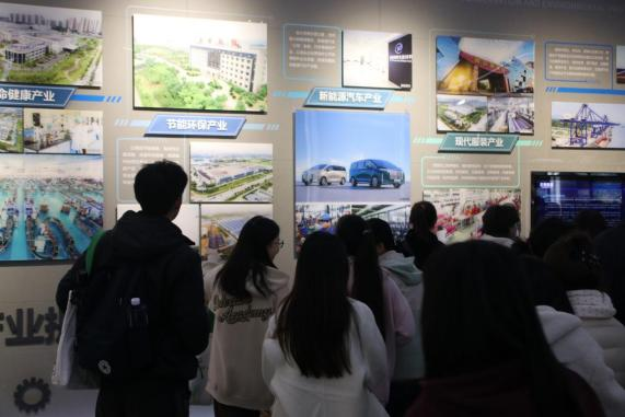 全體師生首先參觀了黃石規劃展示館。展館以時間為線索、以工業發展軸為脈絡,分為“晶彩之美、工業之美、奮斗之美、大城之美、大冶湖生態新區規劃展”五個展廳,展館實現現代科技和技術高度融合,讓大家了解了黃石的城市歷史、發展現狀和美好愿景,深刻感受到黃石的生態之變和城市之美。