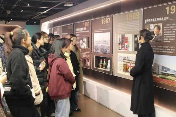 隨后,大家走進勁牌有限公司,在講解員的帶領下先后參觀了勁牌生產車間和勁牌展館。在場館的沉浸式體驗和互動交流中,感悟了一個勇于改革、開拓創新的企業70年來堅守初心、砥礪奮進的發展進程,每一個“勁酒人”對每一滴酒與健康極致的追求,同學們深刻體會到了技術賦能、科技創新助力培育新質生產力的重要性。