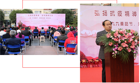 2020年10月24日上午,寶安社區黨委在寶安花園文化廣場組織開展“弘揚抗疫精神 倡導健康生活”武昌周周講主題學習活動暨“九九重陽節 濃濃敬老情”系列活動。我院易新濤教授應邀為下沉黨員講授《弘揚偉大的抗疫精神》微黨課。