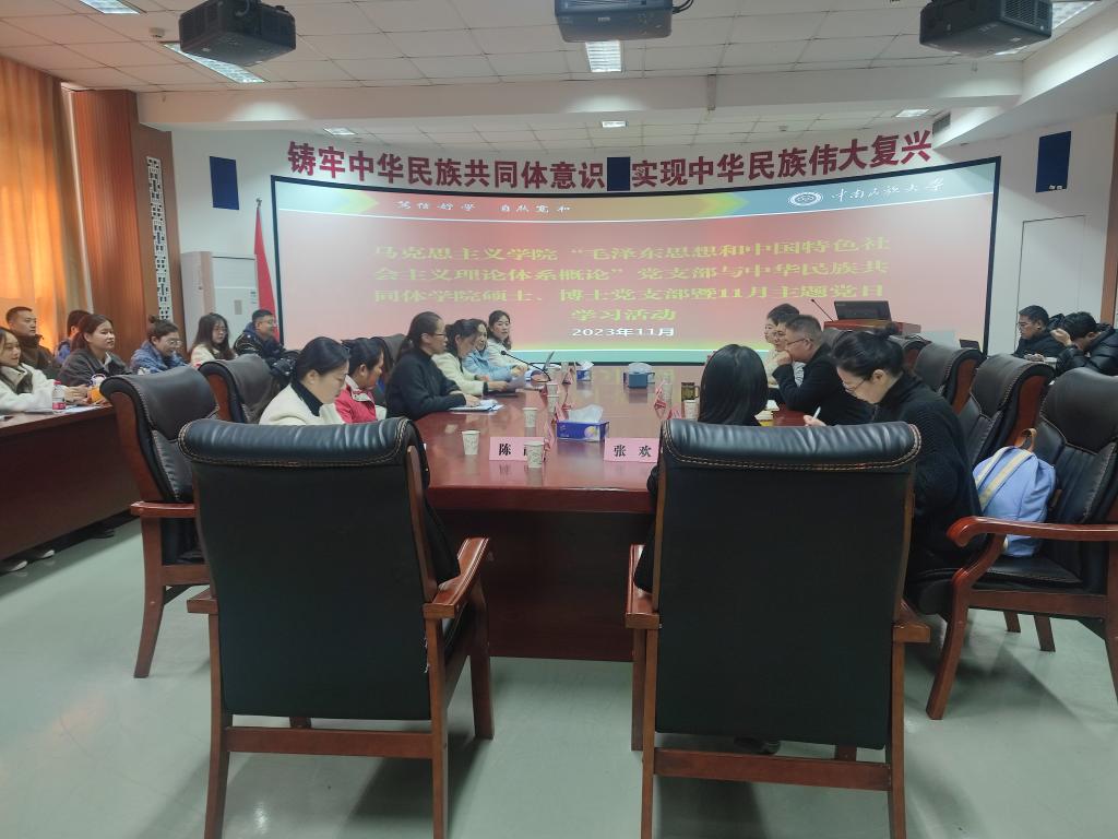 為進一步學(xué)深悟透習(xí)近平總書記在二十屆中央政治局第九次集體學(xué)習(xí)時的重要講話精神,11月22日上午,我院毛澤東思想和中國特色社會主義體系概論教研室黨支部與中華民族共同體學(xué)院碩士生黨支部、博士生黨支部聯(lián)合開展“弘揚中華民族精神,鑄牢中華民族共同體意識”主題黨日活動。中華民族共同體學(xué)院黨總支賀展書記、我院黨委副書記李建青以及三個支部師生黨員、發(fā)展對象、入黨積極分子參加活動。活動由我院毛澤東思想和中國特色社會主義體系概論教研室黨支部書記瞿曉琳主持。