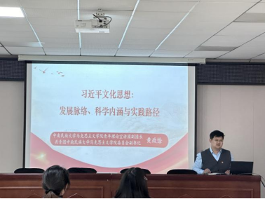 在理論學(xué)習(xí)環(huán)節(jié),黃政馀作了題為《習(xí)近平文化思想:發(fā)展脈絡(luò)、學(xué)科內(nèi)涵與實踐路徑》的宣講報告。他以分析《新時代人文經(jīng)濟學(xué)》智庫報告發(fā)布的重大意義作為引入,從舉旗定向、培根鑄魂、放眼未來三大維度回顧以習(xí)近平同志為核心的黨中央引領(lǐng)宣傳思想文化事業(yè)的發(fā)展紀(jì)實,對習(xí)近平文化思想的發(fā)展脈絡(luò)與科學(xué)內(nèi)涵進行詳細(xì)講解。此外,他還著眼新形勢、新任務(wù),就做好社區(qū)黨組織的宣傳思想文化工作提出了建議。