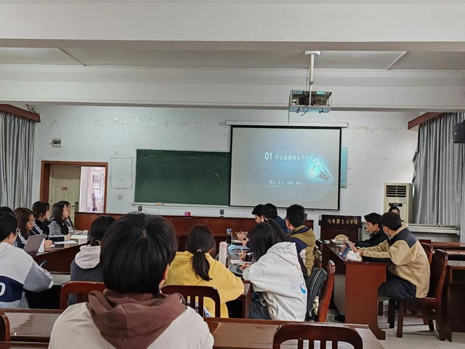 宣講團成員梁利紅、嚴亦心分別就“新質生產力”和2024年政府工作報告相關內容進行領學。梁利紅以“解碼新質生產力—賦能青春‘新’力量”為題,闡述了新質生產力的深刻內涵與重要意義。她強調,青年理論宣講者對自身要有高標準、高要求、高期待,爭做“新質青年”。嚴亦心以“聚焦政府工作報告要點,共謀國家發展大計”為題,圍繞“2023年工作回顧”“2024年主要預期目標”“2024年政府工作重點”三個部分對政府工作報告進行了解讀。她指出,思政學子要深入學習和領會報告精神,將其融入日常的生活學習中。領學結束后,與會成員對此次宣講內容進行了朋輩評議,從課件呈現、宣講內容、宣講形式等方面提出了中肯建議。