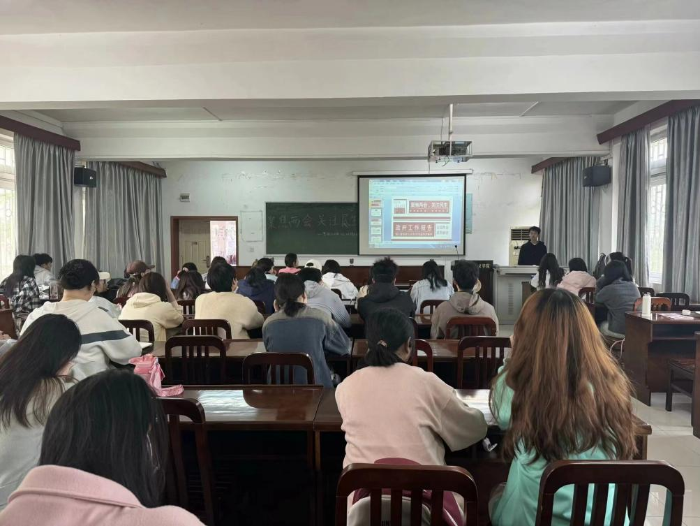 為學習貫徹全國兩會精神,深化對青年學生的思想政治引領,4月3日上午,我院在文一樓411教室舉行了2023級本科生4月份主題班團會。研究生宣講團成員梁利紅、本科生宣講團成員嚴亦心,2023級全體團員及青年代表參加會議。本次班團會由2301班團支書周炳坤、2302級團支書盧昕辰共同主持。