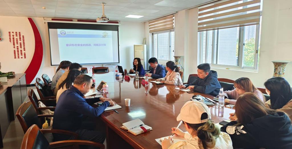 副院長瞿曉琳對本次講座作了總結。她認為,倪素香教授在報告中強調了意識形態安全的極端重要性,由淺入深、娓娓道來,加深了我院師生對意識形態安全的理解和思考;本次講座不僅是一場內涵深刻的學術報告,更是一堂非常及時的關于加強意識形態安全教育的思政課。她希望大家加強學習、深入研究、練好內功,為維護意識形態安全做出新時代學人的應有貢獻。