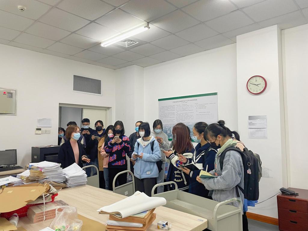 實習共分兩個階段進行。第一階段實習地點是檔案館,同學們首先在檔案部李昂主任的帶領下進行參觀學習,對檔案館形成整體認識。檔案館其他部門老師為大家進行有針對性的講解和培訓,在熟悉檔案館相關規章制度及工作流程后,同學們在檔案部辦公室和查檔大廳分組實習,主要負責畢業生檔案的核對、編碼、整理、裝盒以及記錄等工作。第二階段的實習內容為參觀校史館,講解員為大家介紹了學校的發展歷程以及取得的辦學成果。在校史館實習開始前,李昂主任還為同學們帶來了題為“歸檔文件整理規范”的精彩講座,同學們在講座過程中認真記錄學習、積極參與互動。
