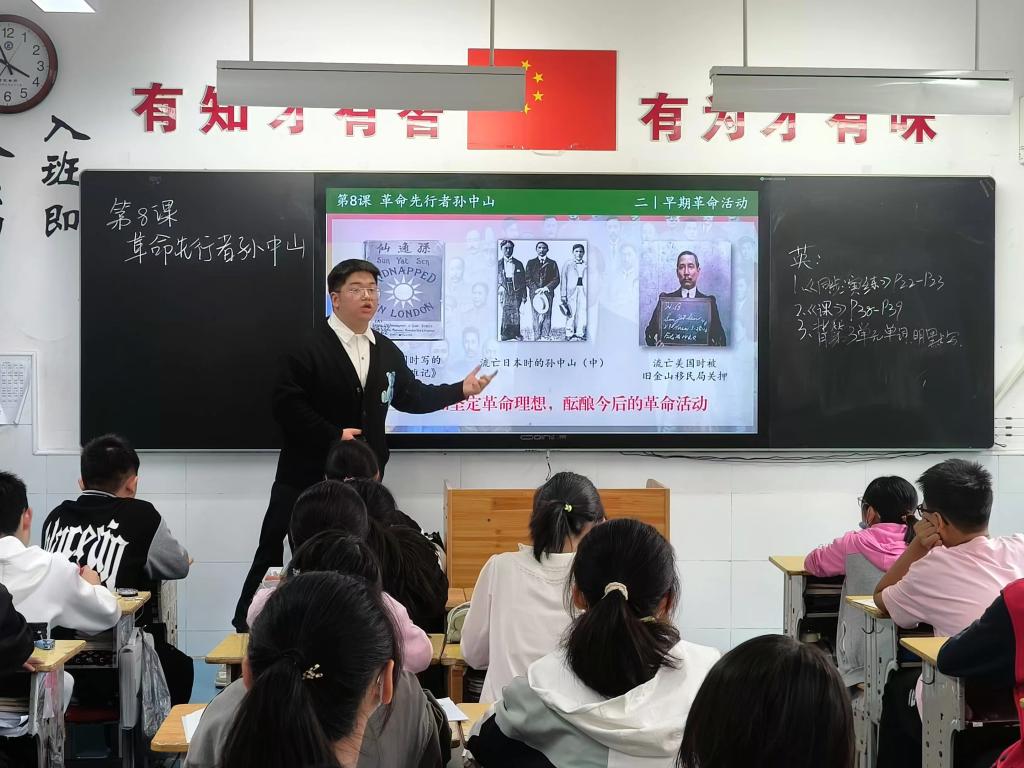 三是上好公開課,提升實踐能力。為了進一步增強中學歷史教學的能力,20級歷史學的同學們走進中學,走上講臺。10月10日下午,張俊瀟同學、龍傲同學分別為旭光學校八年級1班、八年級2班兩個班級講授《革命先行者孫中山》一課。旭光學校姚老師、陶老師對前來實習的同學們進行輔導,課后進行評課議課。她們專門針對兩位同學講課實習的課堂亮點和不足進行了點評,她們充分肯定兩位“小老師”教態自然、環節完整、內容流暢,是當老師的好苗子。