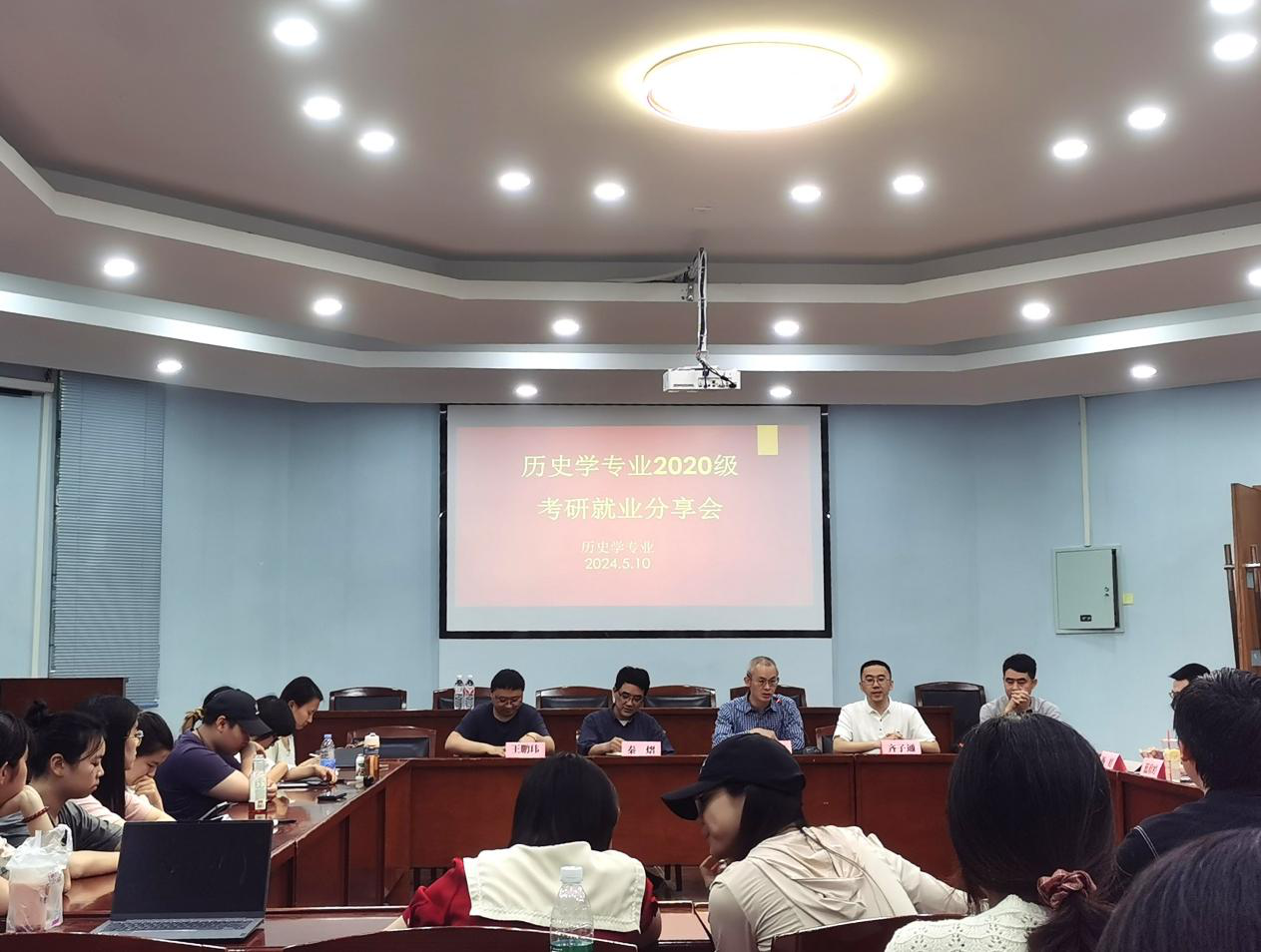 為幫助同學(xué)們進(jìn)一步認(rèn)清考研形勢(shì),明確自身努力方向,民族學(xué)與社會(huì)學(xué)學(xué)院歷史學(xué)專(zhuān)業(yè)于5月10日下午6點(diǎn)在學(xué)院八角樓報(bào)告廳舉辦歷史學(xué)專(zhuān)業(yè)2020級(jí)考研經(jīng)驗(yàn)分享會(huì)。學(xué)院副院長(zhǎng)方長(zhǎng)明、歷史學(xué)教研室秦熠、齊子通、鄭俊華、王鵬瑋老師,學(xué)工辦主任袁磊老師,以及歷史學(xué)專(zhuān)業(yè)大一至大三的同學(xué)們參加了此次分享會(huì)。本次分享會(huì)邀請(qǐng)了楊依蕃、楊婷、藍(lán)欣婷、楊樂(lè)融、曾好、孫航等6位學(xué)長(zhǎng)學(xué)姐來(lái)到現(xiàn)場(chǎng),就保研、考研、就業(yè)方面做了成功經(jīng)驗(yàn)的分享。