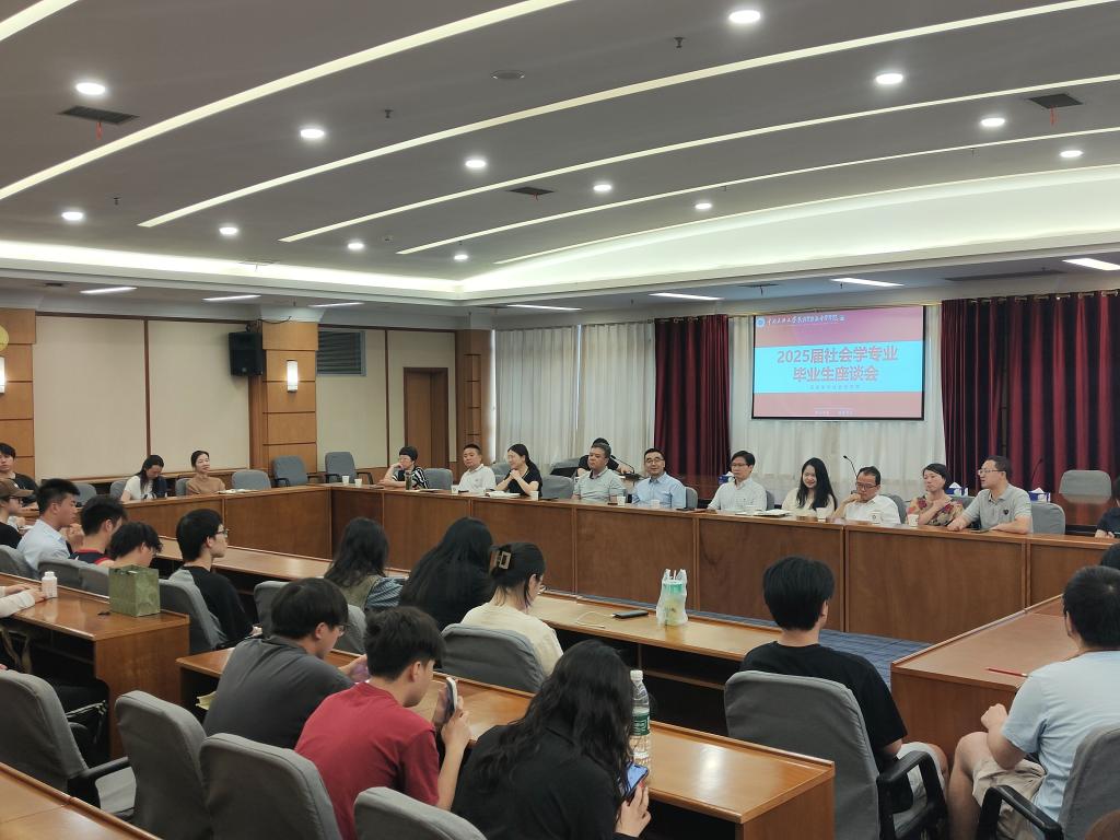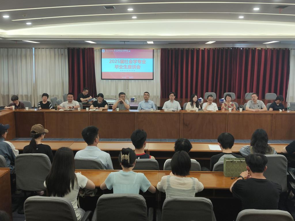 6月5日下午,社會學系在學術交流中心三樓一會議室舉辦2025屆畢業生座談會。院黨委書記錢文彬、院長陳祥軍、院黨委副書記王璐璐、副院長唐胡浩、社會學系主任章長城、2021級輔導員張舒出席座談會,參加本次座談會的還有社會學系部分老師和2021級社會學專業畢業生,座談會由社會學系副主任盧飛主持。