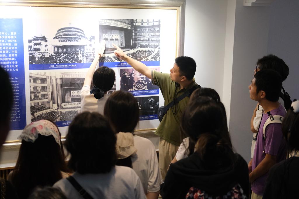 首先,黨員師生走進重慶市人民大禮堂。這座融合中國傳統建筑美學與現代工程技術的地標性建筑,不僅是巴渝文化的物質載體,更鐫刻著深厚的紅色印記。在講解員的引導下,飛檐斗拱間的巴渝文化基因與穹頂結構蘊含的時代創新智慧漸次展開 —— 作為新中國成立后西南地區重要的政治文化活動中心,這里曾見證無數承載使命與擔當的歷史時刻,承載著黨領導人民建設新重慶的奮斗記憶。黨員們通過禮堂內懸掛的革命歷史照片,深入了解建筑背后的城市發展史,在歷史傳承與現代建設的交疊中,觸摸重慶紅色基因的文化脈動,感悟中國共產黨人接續奮斗的精神力量。