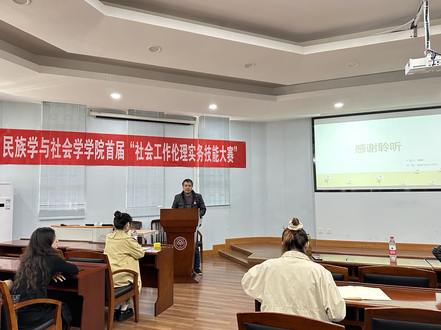 為增強社會工作專業碩士研究生的專業能力,培養學生綜合創新能力,切實提高學生專業素養和學術水平,促進我校社會工作人才培養質量的提升,我院于11月17日在八角樓報告廳舉辦民族學與社會學學院首屆“社會工作倫理實務技能大賽”。