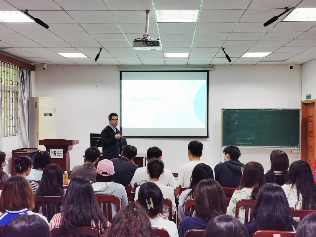 講座伊始,張可可老師向同學們介紹了社會工作實務的特質,以“知其所以然——知其然——知其何以然”的思考方法為出發點,以“看待問題、分析問題、解決問題”的核心實質為落腳點,向同學們展現了社會工作專業的藝術性和科學性。隨后,張可可老師結合自己的實務經歷,就“追根:問題是怎么產生的”“動機:改變是怎么發生的”“解題:方案怎樣更好設計”“自覺:如何使用自我的力量”“判斷:價值倫理的運用”“省思:批判、反思與總結”六個角度逐一展開論述,深刻地講解了什么是社會工作的想象力、如何運用社會工作的想象力以及社會工作的想象力在社會工作實務過程中的重要意義。