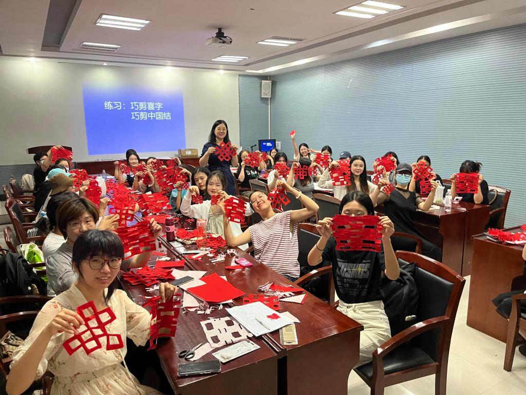 本期研學班開設了剪紙、中國結制作、扎染以及文物修復等四門課程,吸引了來自不同學院的50余名本碩博同學參與。