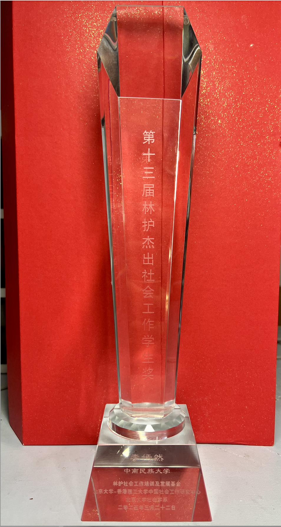 3月22日,第十三屆林護杰出社會工作獎頒獎典禮在北京大學舉行,我院社會工作研究生李嫣然榮獲中國社會工作界最高榮譽的專業內學生獎項“林護杰出社會工作學生獎”(2024-2025年度)。