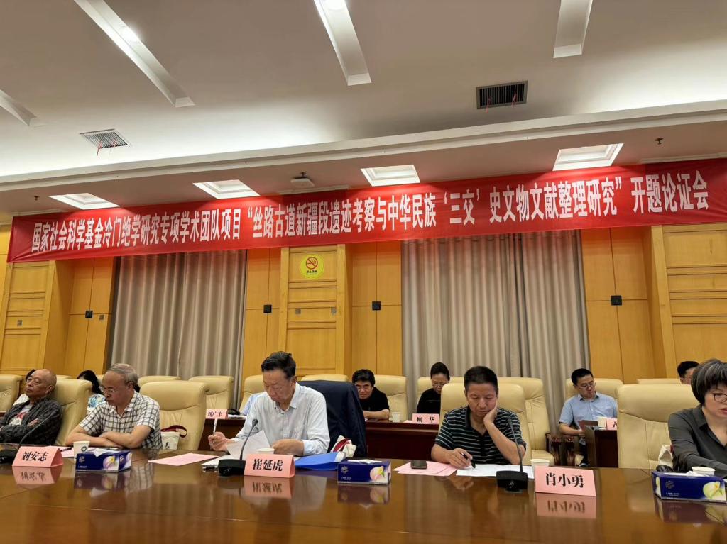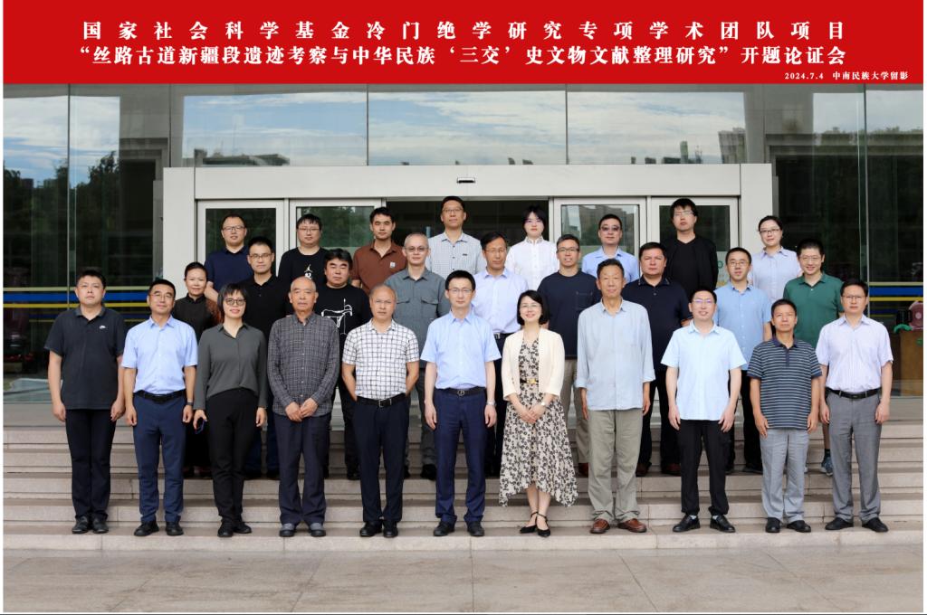 2024年7月4日上午,由中南民族大學民族學與社會學學院(民族學博物館)院長陳祥軍教授擔任首席專家的國家社會科學基金冷門絕學研究專項學術團隊項目“絲路古道新疆段遺跡考察與中華民族‘三交’史文物文獻整理研究”開題論證會在中南民族大學學術交流中心三樓第四會議室舉行。