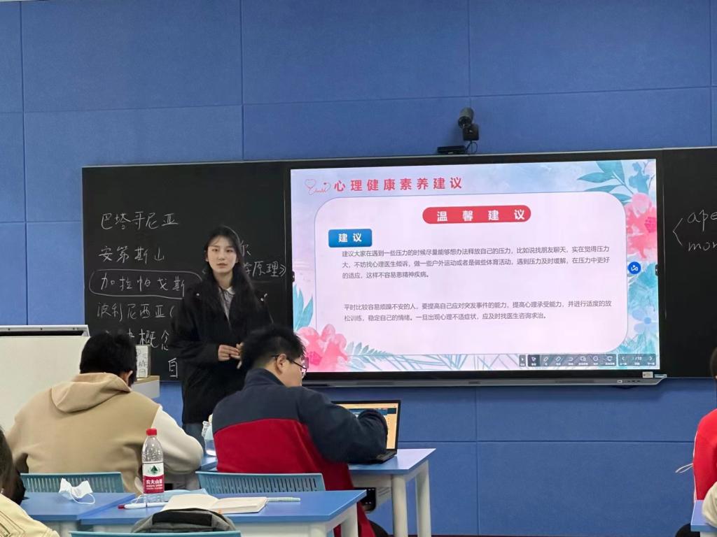 學(xué)院通過團體輔導(dǎo)、知識問答、主題班團會等形式,以班級為單位,全方位、多層次科普精神衛(wèi)生常識,普及心理知識。活動中,各班心理委員組織學(xué)生觀看心理微電影,并鼓勵同學(xué)們在紙上寫下煩惱投進情緒垃圾桶中,釋放情緒壓力,引導(dǎo)學(xué)生正確調(diào)節(jié)情緒,重視精神衛(wèi)生。同時,各班還就心理健康問題開展小組討論,營造健康和諧、積極向上的班級文化氛圍。同學(xué)們紛紛表示,將把精神衛(wèi)生常識運用到今后的大學(xué)生活中去,正確面對學(xué)業(yè)壓力和考試壓力,展現(xiàn)民社學(xué)子良好的精神面貌。