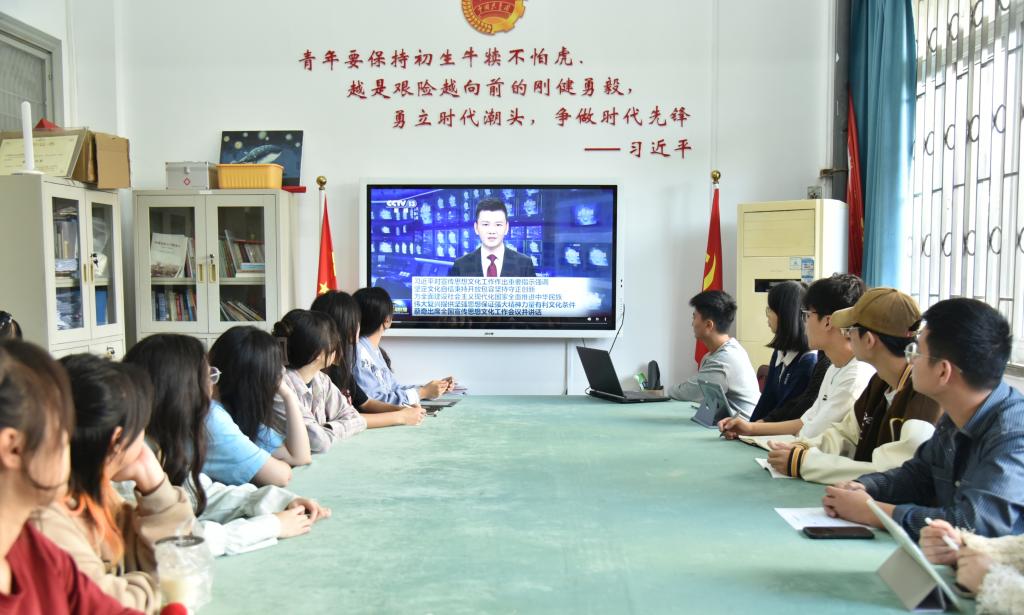 會后,與會學生干部以部門為單位依次分享本次理論學習會的心得體會。大家紛紛表示,將牢牢把握習近平文化思想內涵,從黨的創新理論中凝心鑄魂,為強國建設、民族復興貢獻青春力量。