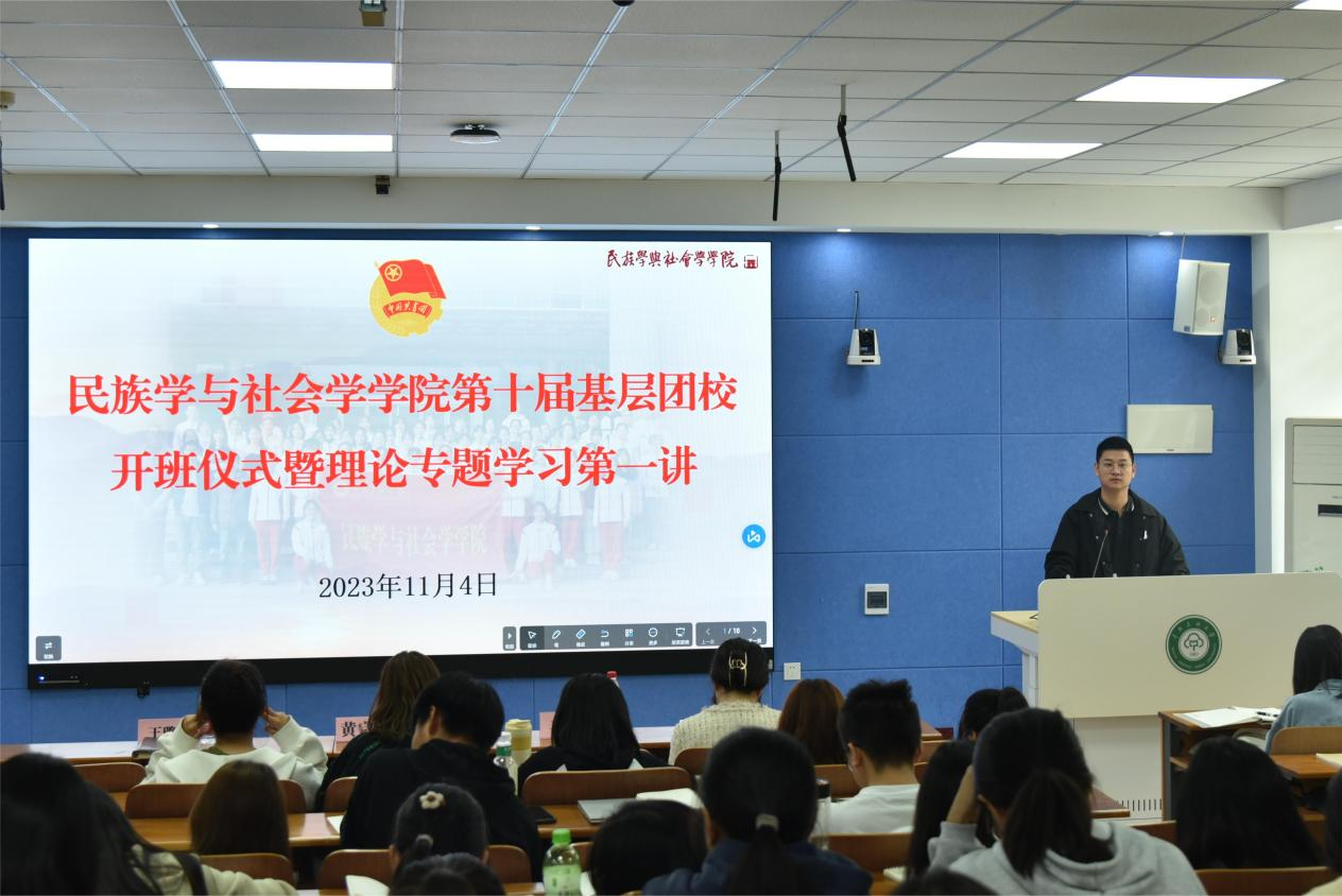 為深入學習貫徹習近平新時代中國特色社會主義思想、加強鑄牢中華民族共同體意識對團員青年的思想引領作用,進一步強化基層團支部組織建設。11月4日上午,學院在10號教學樓209教室舉行2023年基層團校培訓班開班儀式暨團課第一講。黃宗貴教授主講,院黨委副書記王璐璐、各年級輔導員出席儀式,60余名培訓班學員、30余名團學宣傳骨干共同到場學習。開班儀式由院團委副書記馬博博主持。