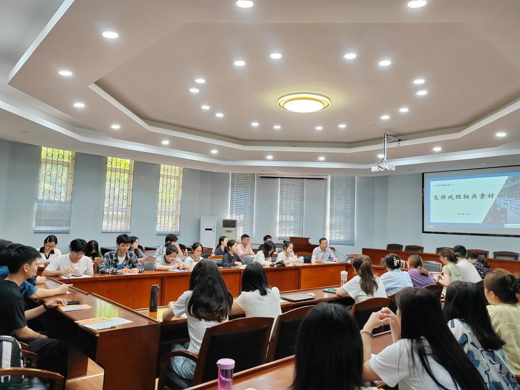 “大家認為新聞稿怎樣才能寫好呢?”黃宗貴教授在宣傳骨干培訓班第二講的開始向參會人員提出了這樣一個問題。5月7日下午,民社學院宣傳骨干培訓課程第二講在八角樓報告廳順利開展。黨委副書記王璐璐、各年級輔導員和學院全體宣傳骨干參加此次培訓,由學工辦主任袁磊主持。