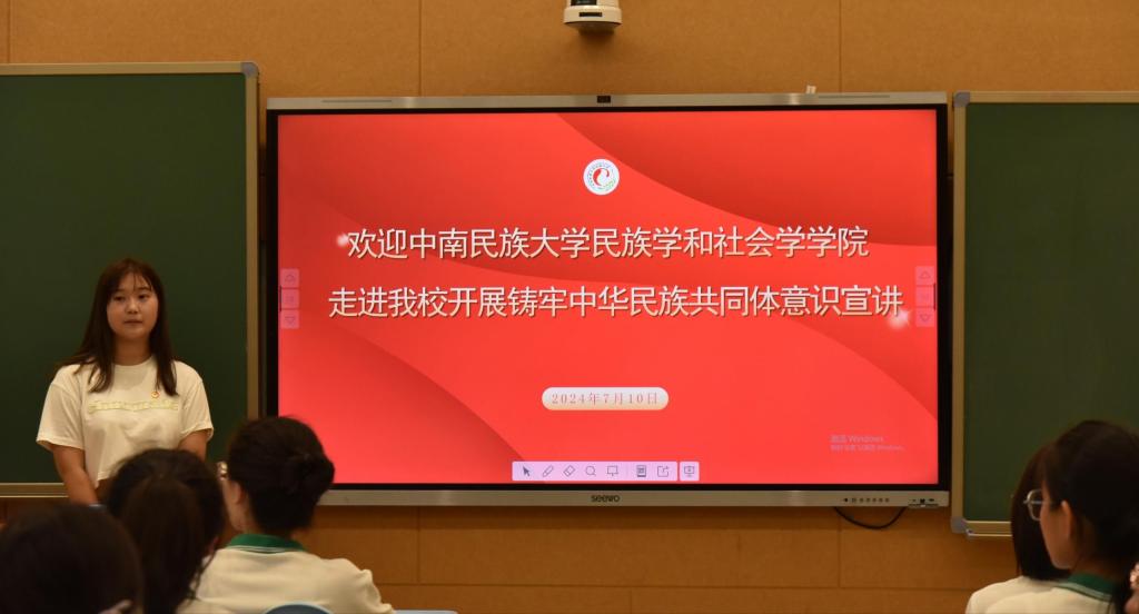 7月10日下午,民族學與社會學學院“同心石榴籽”鑄牢中華民族共同體意識學習實踐宣講團走進中央民族大學附屬中學呼和浩特市分校開展宣講。玉泉區委統戰部常務副部長池爽、統戰部副部長、民委主任鞏建平、中央民族大學附屬分校呼和浩特校區黨政辦主任高宇、團委書記王偉等人參與本次活動。