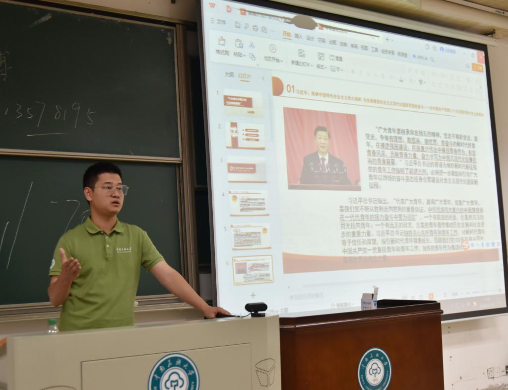 隨后,團委副書記馬博博為營員們做了題為《讓青春為中國式現代化挺膺擔當》的第一講理論課。馬博博老師帶領大家學習團章及黨的二十屆三中全會精神,回顧了共青團的光榮歷史,重新學習團章內容,認識團員的權利和義務,了解民社學院團委學生會的相關工作。他強調,作為團委學生會的成員,要提高自身的政治站位,在日常工作及生活中要嚴格要求自己,成為學院同學們政治方向的“引領者”、自我改革的“革新者”、學院師生的“服務者”、特色活動的“組織者”,積極參與到團委的各項活動當中,在實踐中展現青春作為,彰顯青春風采,為學院貢獻青春力量。