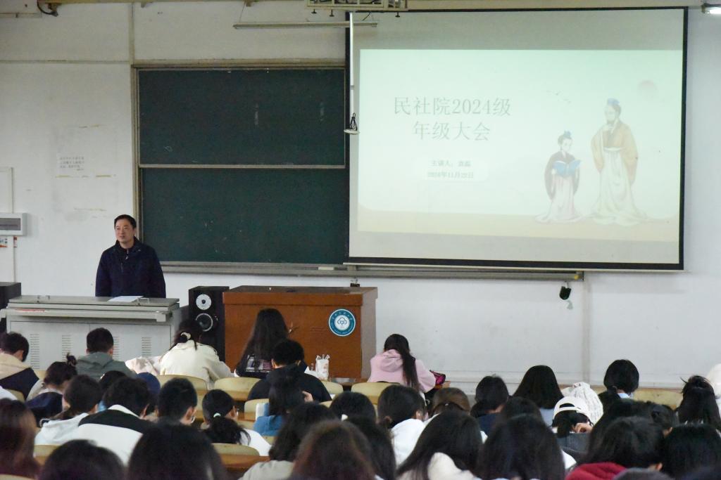 11月22日上午,我院于教學樓一棟301教室舉行2024級年級大會,2024級全體本科生參加,2024級輔導員袁磊出席會議。