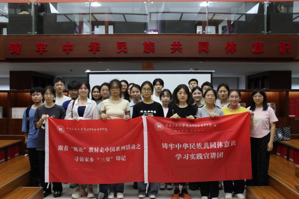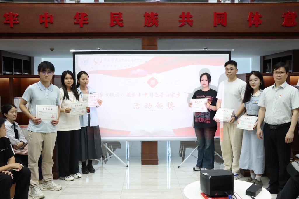 本次讀書分享會緊密圍繞《中華民族共同體概論》教材開展,以實踐促學習,以閱讀強認同。活動現場,首先舉行了“跟著《概論》教材走中國之尋訪家鄉‘三交’印記”活動頒獎儀式和授牌儀式。與會領導為在活動中表現突出的同學頒發榮譽證書與“三交印記牌”,充分肯定了同學們返鄉開展調研、深度挖掘民族交往交流交融故事的成果,并鼓勵其將實踐成果常態化、品牌化,持續講好新時代民族團結進步故事。