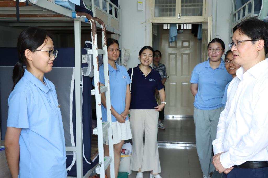 在與新生們的交流中,老師們看到同學們內務整潔、積極融入集體,非常欣慰,勉勵大家要在寢室生活中相互理解、互幫互助,共同營造整潔有序、溫馨和諧的宿舍氛圍。