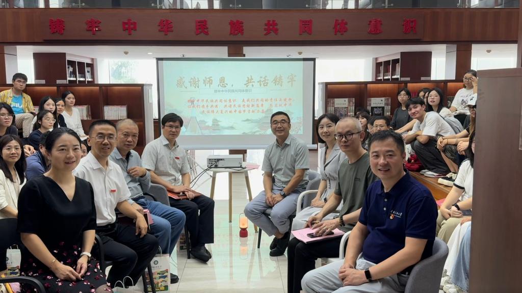 9月9日,我院“同心石榴籽”鑄牢中華民族共同體意識學(xué)習(xí)實(shí)踐宣講團(tuán)在學(xué)校圖書館鑄牢中華民族共同體意識閱讀空間舉行“鄂蒙聯(lián)動”暑期社會實(shí)踐成果交流活動。我院黨委書記錢文彬、院長陳祥軍、校圖書館館長饒映雪、院黨委副書記王璐璐、校學(xué)報(bào)副主任方長明、副院長齊子通、院組織員吳謙出席會議。宣講團(tuán)黨支部書記袁磊,指導(dǎo)教師章長城、劉麗娜、席鈺萍、王瑩、袁亞南、秦熠,以及宣講團(tuán)的四十余名學(xué)生代表參加。