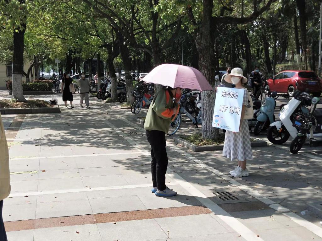 學生黨員張揚希望自己能為學校組織的核酸檢測活動盡自己的一份力量,“一個善意的提示,一個簡潔的表達,既傳遞了‘奉獻友愛’的志愿精神,又能讓醫護人員和社區工作者感受到溫暖。”