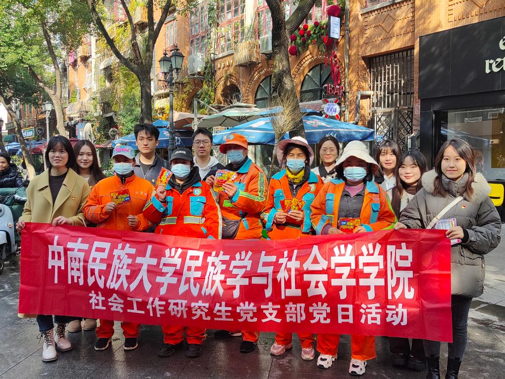 5日下午,在參觀完武漢中共中央機(jī)關(guān)舊址后,支部黨員們積極踐行社會工作專業(yè)理念,為在寒冬中辛苦工作的環(huán)衛(wèi)工人們送上暖冬物資,感恩他們的辛勤奉獻(xiàn)。黨員同志們表示在享受當(dāng)下美好生活的同時,須意識到背后有一群勤勉的城市守護(hù)者們在默默地付出,在守護(hù)著這座城市的美好。