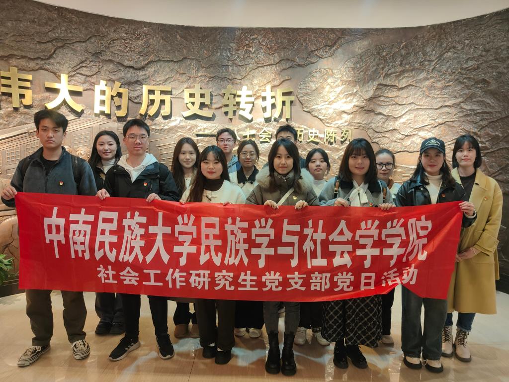 為弘揚(yáng)以偉大建黨精神為源頭的中國共產(chǎn)黨人精神譜系,貫徹落實(shí)好習(xí)近平總書記對宣傳思想文化工作作出的重要指示。12月5日,社會工作研究生黨支部成員前往八七會議會址紀(jì)念館及武漢中共中央機(jī)關(guān)舊址紀(jì)念館進(jìn)行黨建活動。本次黨建活動以“承紅色基因,傳暖冬之行”為主題,利用好、發(fā)展好、傳承好紅色資源,以觀促學(xué),在領(lǐng)略優(yōu)秀先輩的先鋒勇跡中進(jìn)一步深化支部黨員的思想教育和紅色文化內(nèi)涵。