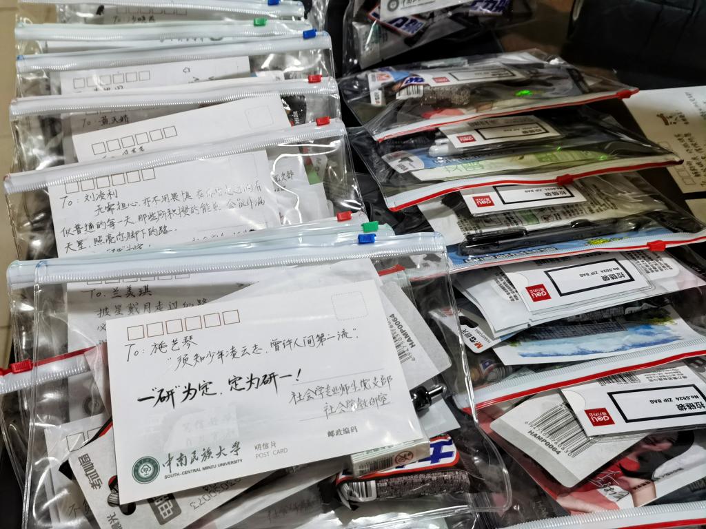 支部和教研室的師生黨員經過精心策劃、細致安排,為社會學專業每位考研學生準備了考研禮包:一套文具套裝祝愿考研學子在考場上文思泉涌、妙筆生花;一份能量棒和暖寶寶為在寒冬中努力備考的學子送上滿滿的溫暖;尤為珍貴的是,每人都收到了黨員同志送給考研學子的手寫賀卡,上面書寫著暖心寄語和專屬祝福。一份份暖心的禮包,承載著對考研學子殷切的期盼;一句句熱切的祝福,寄托了對考研學子深厚的關懷。
