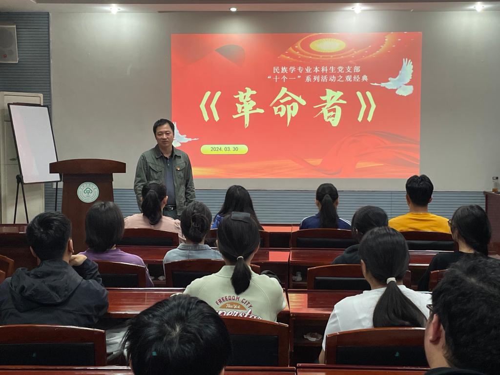 為深入學習貫徹習近平新時代中國特色社會主義思想,進一步厚植學生黨員愛黨愛國情懷,傳承紅色革命精神,接受黨性教育,3月30日晚,民族學專業本科生黨支部在民族學人類學實驗室開展“十個一”黨建系列活動之觀經典活動,組織觀看革命歷史題材電影《革命者》,支部全體在校黨員、發展對象、積極分子代表參加了此次活動。
