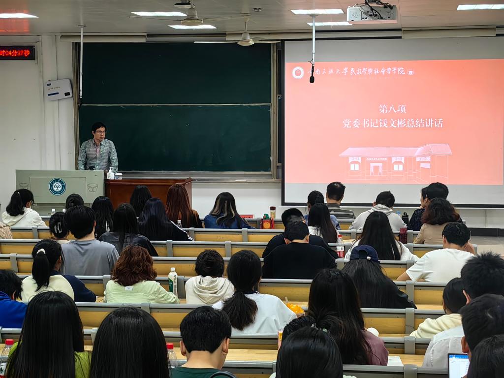 最后,學院黨委書記錢文彬作總結講話。他首先對受表彰的2023年度民主評議優秀學生黨員表示祝賀,對入選本次黨校培訓班的學員表示歡迎,他指出黨校培訓,是所有入黨積極分子、發展對象和預備黨員“加油充電”的難得契機。他要求全體學員要提高政治站位,充分認識培訓的重要意義,并提出三點建議:一是要“坐而善思”悟真理。深入學習黨章、黨的二十大精神和習近平新時代中國特色社會主義思想,真正做到以學鑄魂,做黨的創新理論堅定信仰者和忠實實踐者。二是要“站而能抗”練本領。扎實學好專業知識,練就識大局、克難關的本領,始終胸懷“國之大者”,在實干中練就過硬本領,成就一番事業。三是要“行而有戒”守初心。自覺增強黨的意識和黨性觀念,敬畏法紀,嚴守規矩,真正做到心中有戒,行有所止。他預祝各位學員學有所獲、學有所成,爭取早日成為一名光榮的中國共產黨黨員。
