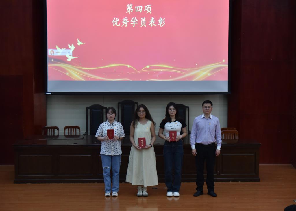 會議伊始,結(jié)業(yè)儀式在莊嚴(yán)肅穆的國歌中拉開帷幕。黨校培訓(xùn)班各小組代表依次上臺進(jìn)行學(xué)習(xí)成果展示。接著,孫艷馨、韋淑荷、侯佳岑三位同學(xué)作為黨校培訓(xùn)班“共讀鑄牢金教材,樹立正確民族觀”讀書演講比賽優(yōu)秀選手,為大家?guī)砹艘粓錾鷦拥难葜v。優(yōu)秀選手展示過后,黨委副書記王璐璐宣讀了關(guān)于黨校培訓(xùn)班優(yōu)秀學(xué)員的表彰決定,學(xué)工辦主任袁磊、黨委副書記王璐璐、黨委書記錢文彬為培訓(xùn)班優(yōu)秀學(xué)員頒發(fā)榮譽證書。