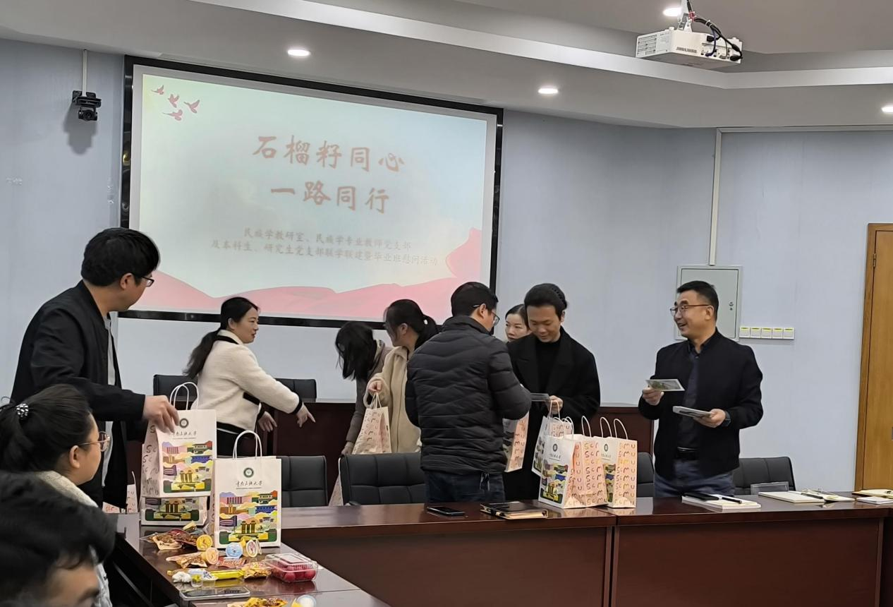 為傳承“石榴籽精神”,深化民族團(tuán)結(jié)教育,增進(jìn)師生情誼,12月4日,民族學(xué)教研室攜手民族學(xué)專業(yè)教師黨支部及本科生、研究生黨支部,在學(xué)院八角樓舉辦了一場主題為“石榴籽同心·一路同行”的民族學(xué)畢業(yè)班慰問暨各黨支部聯(lián)學(xué)聯(lián)建活動(dòng)。學(xué)院黨委書記錢文彬、院長陳祥軍、黨委副書記王璐璐、民族學(xué)教研室教師代表及各支部黨員代表出席了此次活動(dòng),21級(jí)民族學(xué)專業(yè)畢業(yè)班在校學(xué)生積極參與。