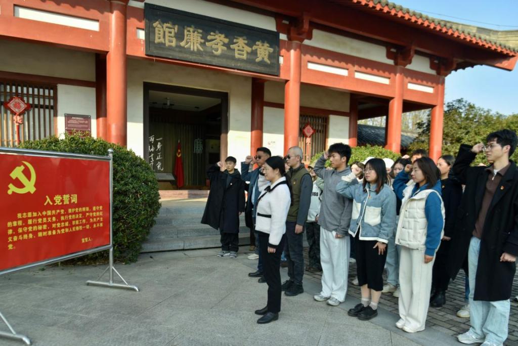在孝廉文化教育基地中華黃香文化園,黨員干部參觀展廳,通過圖文展示、實物陳列、互動體驗等方式了解了黃香的生平事跡以及歷代清廉的先進事跡和反面典型案例,身臨其境地感受到孝廉文化的重要意義。活動結束后,黨委副書記、紀委書記王璐璐帶領全體黨員及預備黨員在黃香孝廉館門口進行莊嚴宣誓,并組織黨員同志集體學習優秀孝廉文化,強化黨性意識,增強政治定力。