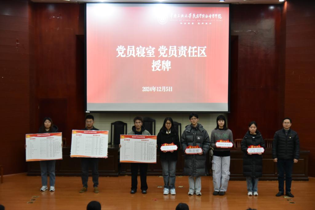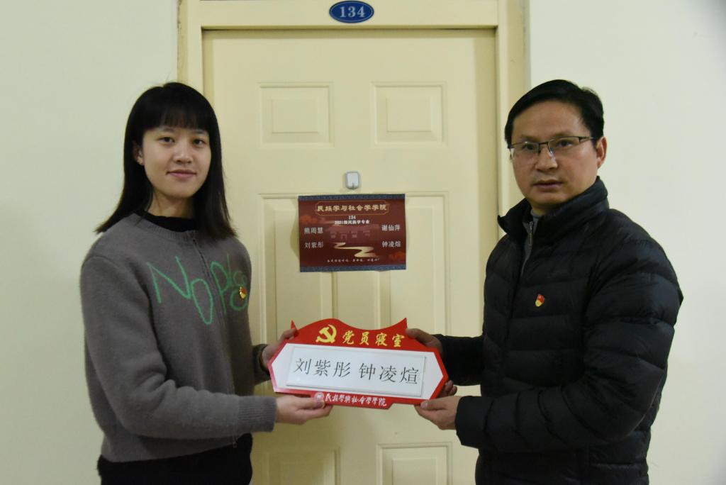 會后,黨委書記錢文彬、黨委副書記王璐璐、各學生黨支部書記一同前往南區11棟和21棟為黨員寢室、黨員責任區掛牌。