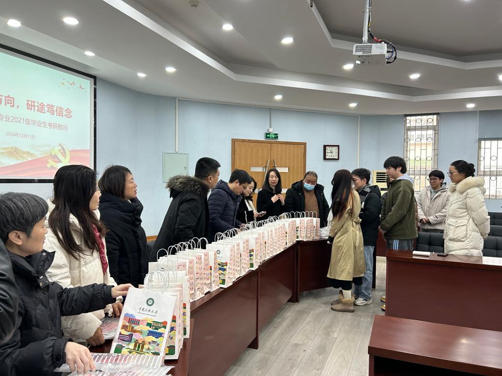 最后,老師們為每位同學發放精心準備的慰問大禮包。大禮包中含有社會工作教研室老師們親筆寫下祝福的明信片,供保暖使用的暖寶寶,含有美好寓意的旺仔牛奶、咖啡及巧克力,文具套裝和文創筆記本。這些滿載著深情的禮物,不僅傳遞了學院對同學們考研之路的堅定支持與美好期待,也激勵著同學們在沖刺階段保持積極向上的心態與勇往直前的勁頭。