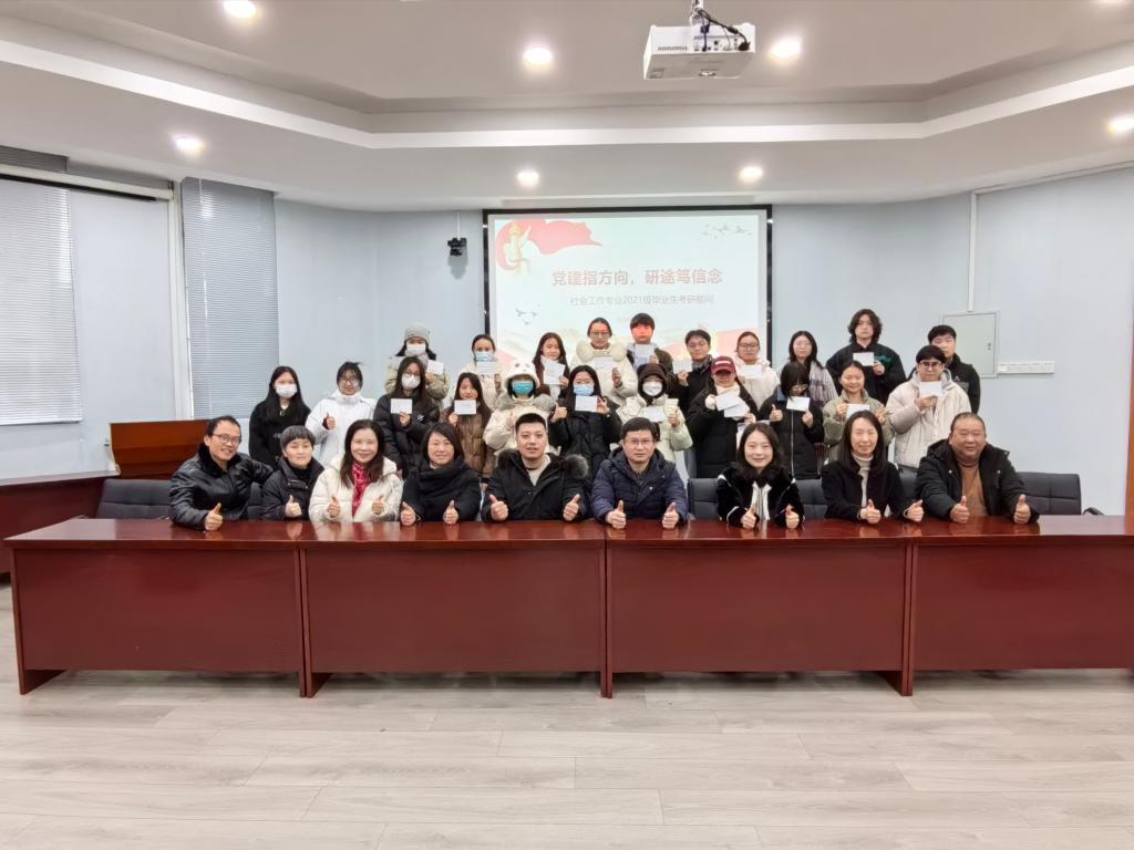 12月11日上午,民族學與社會學學院社會工作教研室、社會工作專業教師黨支部在八角樓報告廳聯合開展了2021級社會工作本科生考研慰問活動。學院黨委書記錢文彬、黨委副書記王璐璐、社會工作教研室全體教師及2021級輔導員出席,社會工作專業2021級考研學生參與此次活動。