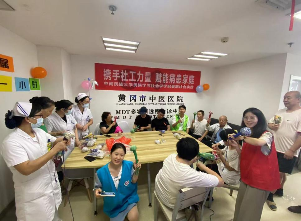 7月至8月,民族學與社會學學院社會工作專業(yè)研究生發(fā)起“社工賦能病患家庭——正念自在心境,除祛病患煩憂”志愿服務小組活動,致力為黃岡市中醫(yī)醫(yī)院的腫瘤病患群體及其家屬提供全方位的賦能支持,同時開展了醫(yī)護人員減壓活動。