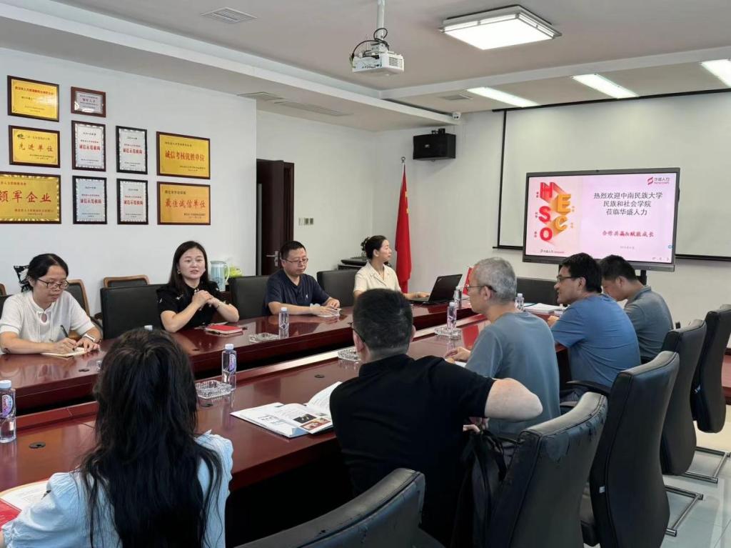 湖北華盛人力資源有限公司擁有多項行業資質榮譽。公司代表在會議上詳細介紹了近年來成功實施的多個項目。面對未來市場的無限可能,同時表達了與民族學與社會學院深入合作的迫切愿望。公司希望借助學院在學術研究、人才培養方面的優勢,共同開展一系列社會調查類項目,旨在通過精準的數據分析與科學的研究方法,為政府決策提供有力支撐,為企業發展指明方向。同時,公司也提出了對實習生基地的建設,期待通過實踐平臺,讓更多學生在真實項目中學習成長,實現從理論到實踐的跨越。